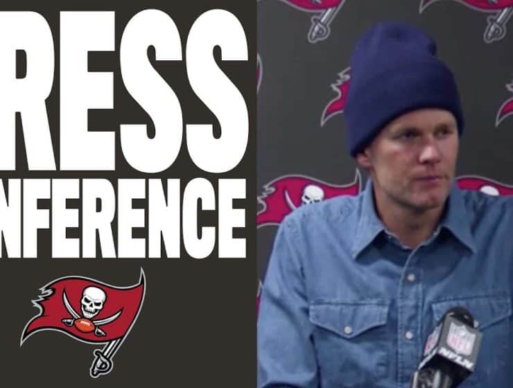 QB Tom Brady meets the press after the loss in the divisional round to the Los Angeles Rams.