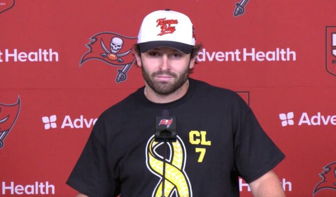 From the Bucs: Quarterback Baker Mayfield spoke to the media following the Bucs’ game against the Buffalo Bills in Week 8. QB Mayfield discussed finding first downs when backed up, how the Bills were able to cover receivers and his faith in his teammates to turn things around.