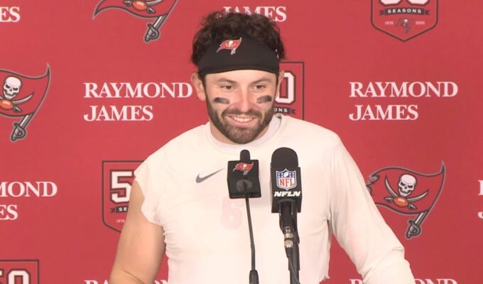QB Baker Mayfield spoke to the media after the Bucs’ 20-17 victory against the Arizona Cardinals.