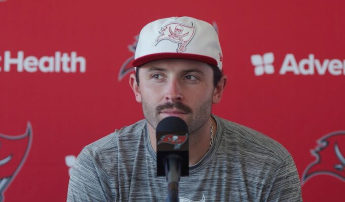 Bucs top Saints 23-3 as Baker Mayfield fileds media questions post game.