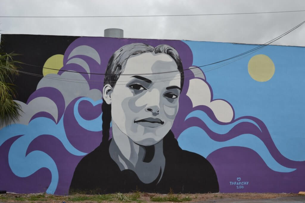 About two years ago, Zanzig, 41, who’s a Florida native but calls Chicago home, gifted a mural on the backside of Franklin Street Fine Woodwork because she wanted to try her hand at it. The expression piece, titled “Untitled,” is of a young female with blues and purples swirling in the background; Carl Johnson of Franklin Woodwork gave her the O.K. and the Seminole Heights neighborhood loved it.