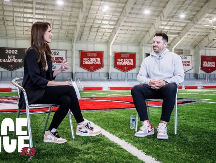 An interview with quarterback Baker Mayfield by team reporter Casey Phillips.