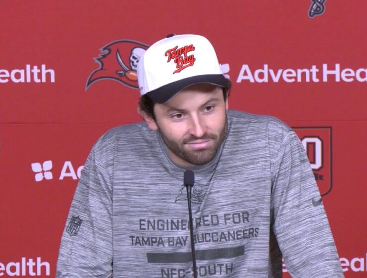 Baker Mayfield spoke to the media after the Bucs’ game against the Philadelphia Eagles.