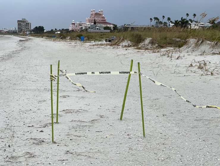 A marked sea turtle nest on Paas-a-Grille Beach showcases these ancient creatures’ nesting grounds.